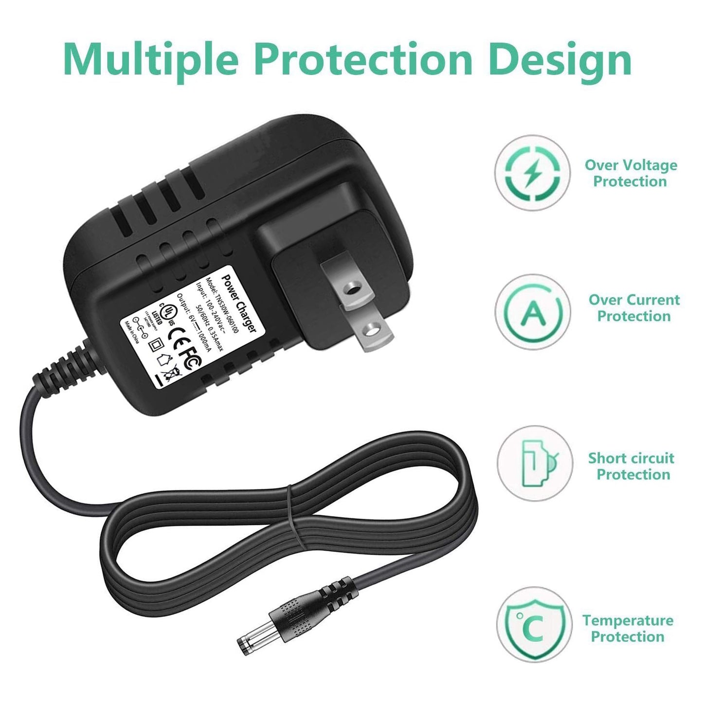 Cfowner 6 Volt Battery Charger for Ride On Toys 6V Kids Ride On Car Charger Universal Charger Electric Battery Power Supplies.
