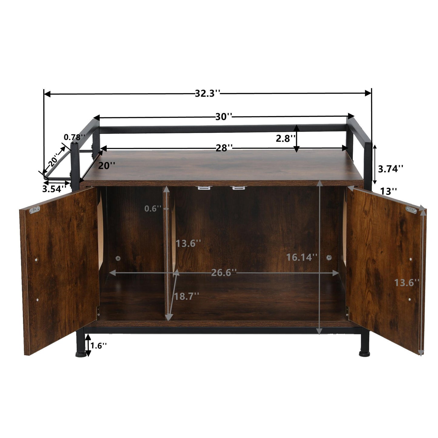 Cfowner Cat Litter Box Furniture Hidden, 30 inches Iron Wood Indoor Privacy Cat Litter Box Enclosure