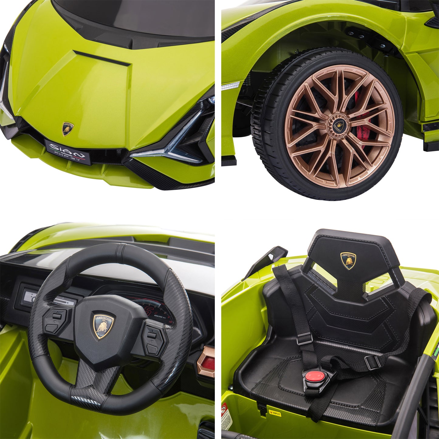 Cfowner Licensed Lamborghini Sian Plastic 12V Children’s Electric Ride On Car Toy w/ Swing-Up Scissor Door, Remote Control, Shock-Absorbing Wheels