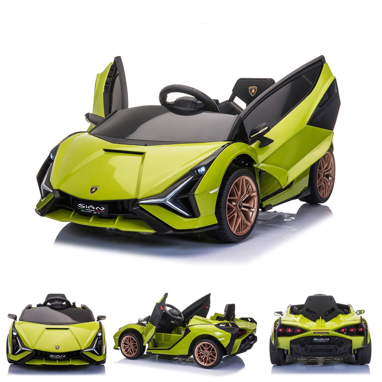 Cfowner Licensed Lamborghini Sian Plastic 12V Children’s Electric Ride On Car Toy w/ Swing-Up Scissor Door, Remote Control, Shock-Absorbing Wheels.
