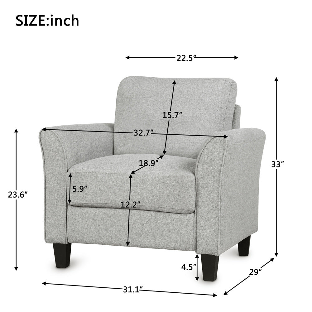 Cfowner Lowestbes Single Couch, Armrest Sofa Single Chair Sofa, Living Room Furniture Fabric Couch for Adult, Light Gray